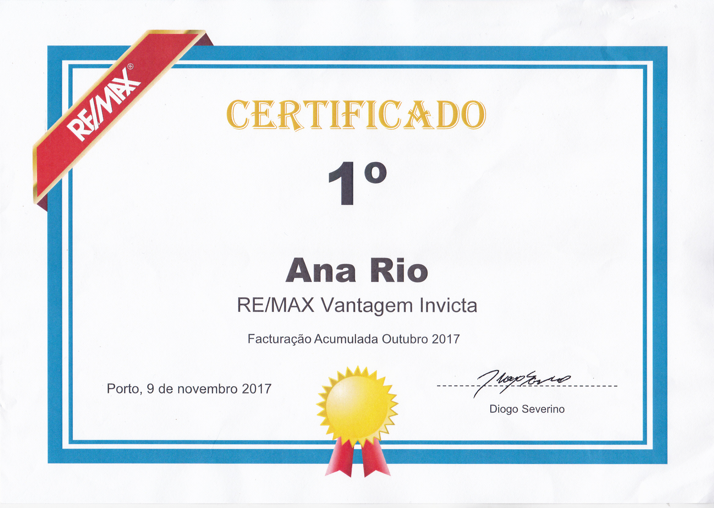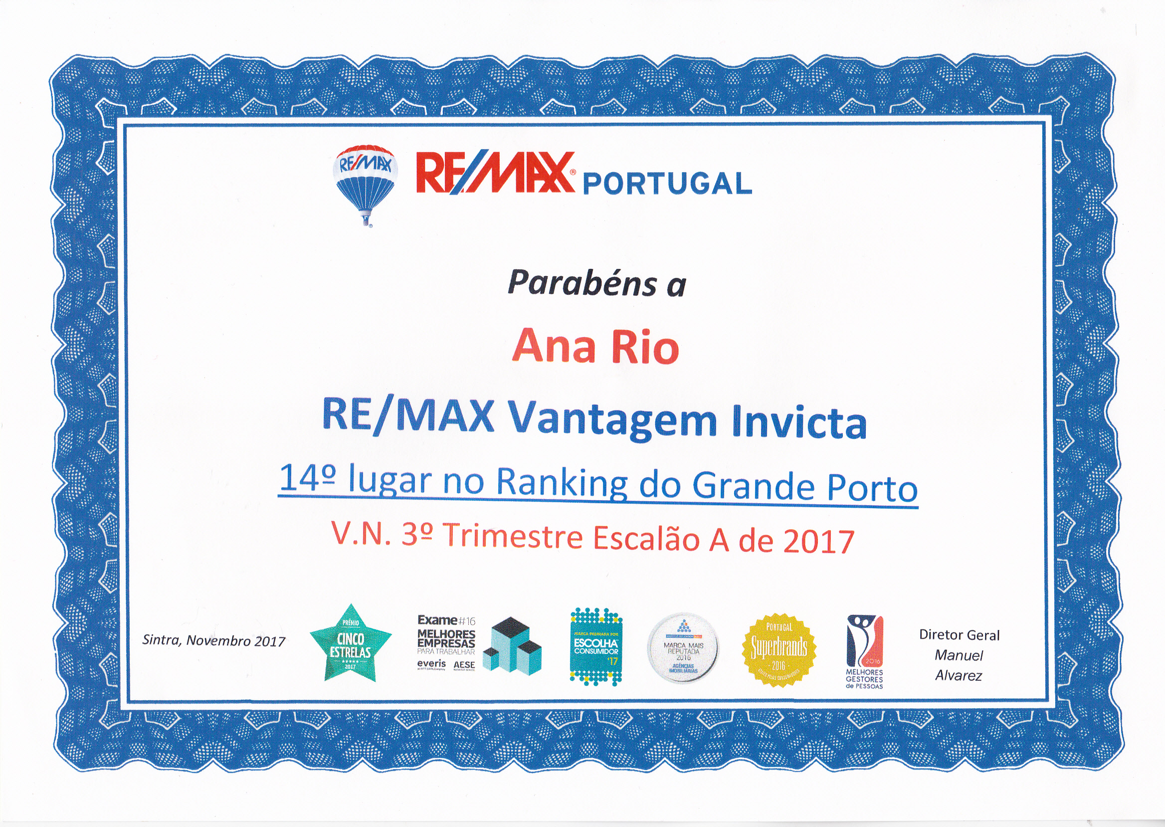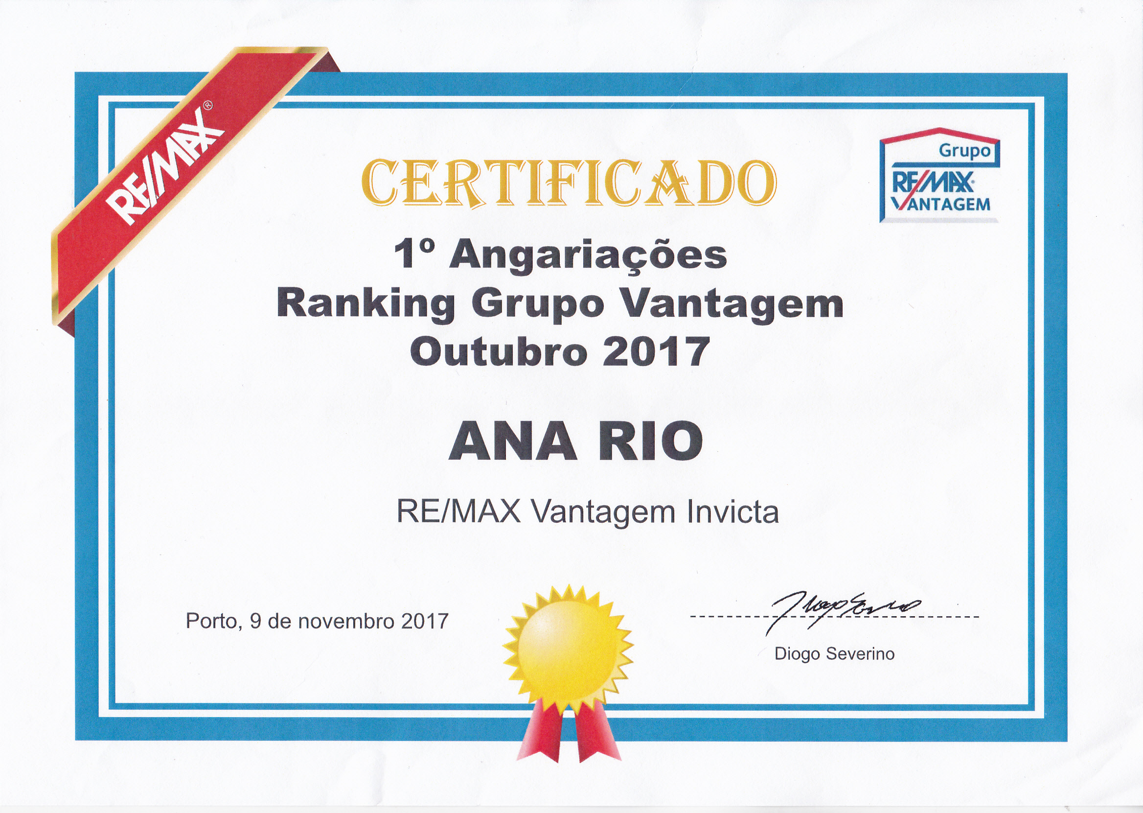 - 1º Lugar em Angariações no Grupo Vantagem no Porto em outubro;